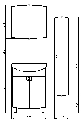 Мебель для ванной комнаты Valente Acquisto 60. В комплекте тумба напольная с раковиной. Мебель Valente предоставляет возможность дополнять разными модулями понравившийся Вам вариант тумбы с раковиной: пеналами(левосторонними и правосторонними), зеркалами, зеркалами-шкафами и светильниками.